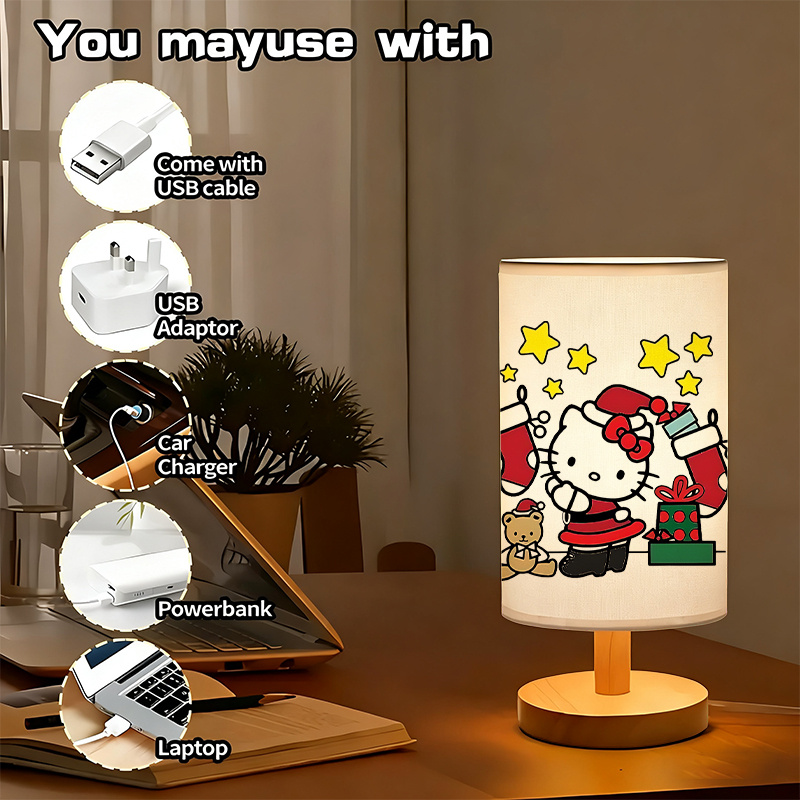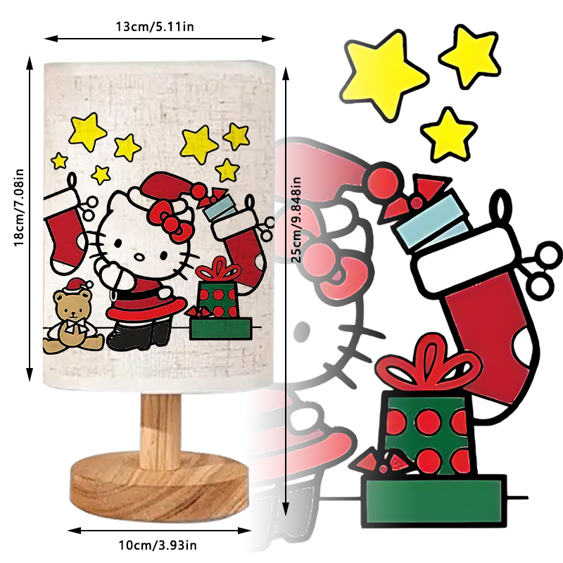 The Festive Themed Sanrio Character Printed Linen Table Lamp is a way to add festive charm and gentle lighting to your home. With its artwork, warm glow, and practical USB power, it is a decorative piece that brightens any space during the holiday season.