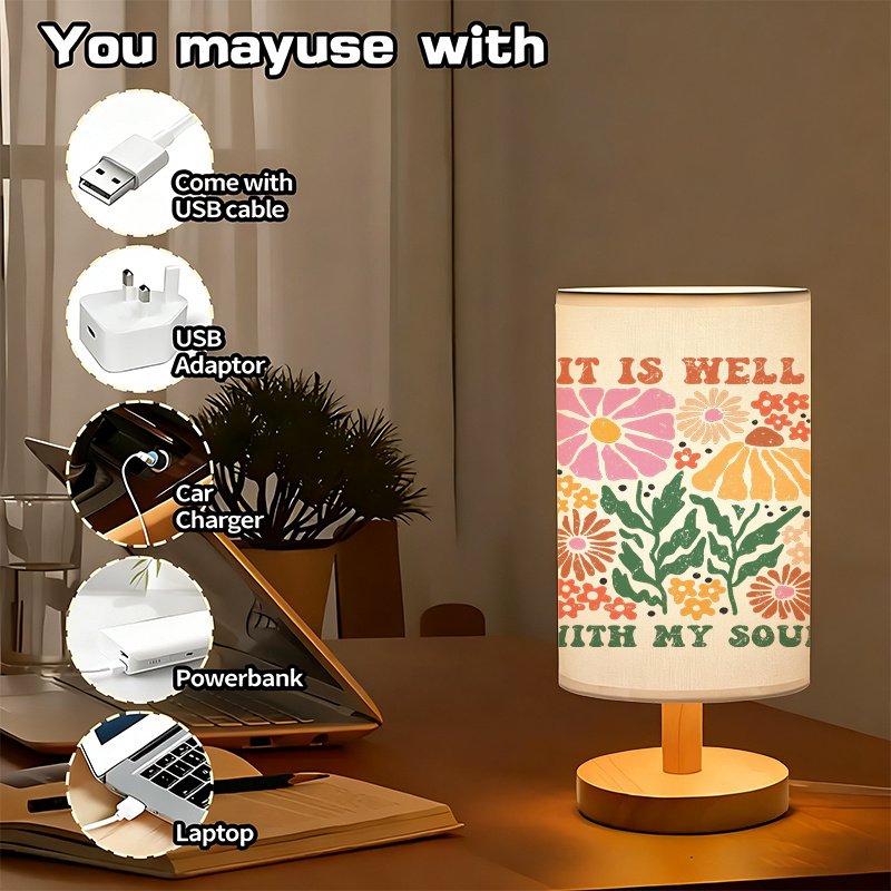 The Floral Pattern USB Powered Linen Table Lamp is suitable for a variety of indoor environments. It works well on bedside tables, desks, shelves, and console tables in bedrooms, reading areas, living spaces, and home offices. The floral design allows the lamp to blend easily into both casual and structured interiors.