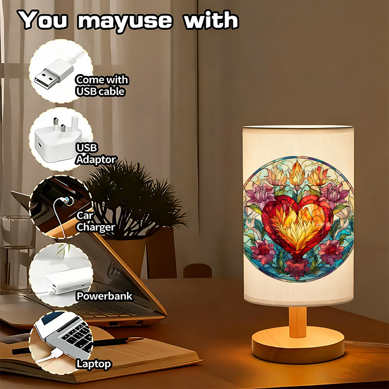This Floral Themed Linen Table Lamp With Stained Glass Design offers both beauty and practicality. Featuring a floral pattern shade and a sturdy wooden base, it provides a warm, ambient glow. Perfect for bedrooms, living rooms, and offices, it’s ideal for those looking for an elegant and energy-efficient lighting solution. Powered by USB, it’s easy to use and move anywhere.