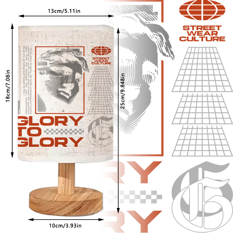 The Glory To Glory Printed Linen Table Lamp For Decor blends urban art culture with modern home lighting to create a bold decorative statement. Featuring a graphic streetwear-inspired design printed on a textured linen shade, this lamp brings personality and creativity into contemporary living spaces. Its clean typography, abstract portrait elements, and layered visuals reflect modern street culture while maintaining a refined aesthetic suitable for home interiors. Designed with USB power for everyday convenience, this streetwear USB linen lamp delivers soft ambient lighting that enhances bedrooms, living rooms, studios, and creative workspaces. Whether styled as a bedside lamp or an accent piece, it adds atmosphere and artistic edge without overwhelming the space.