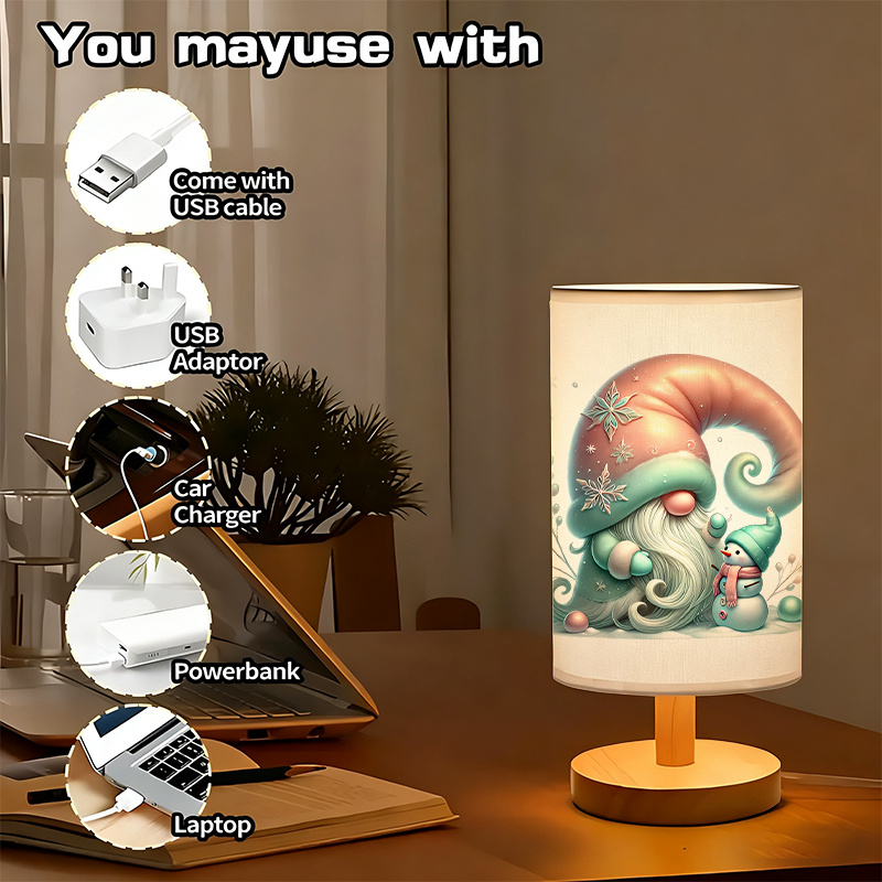 The Gnome and Snowman Printed Linen Table Lamp is a whimsical addition to any home, especially during the winter and holiday season. The gnome design paired with a snowman brings warmth and joy to any room. It serves both as a functional light and as a statement piece of décor. Its compact size allows it to fit easily on nightstands, desks, and side tables, while the soft lighting it provides enhances the ambiance. The construction ensures that it will last for years to come, and with its USB-powered option, it's also energy-efficient and practical. Whether used in a living room, bedroom, or children's room, this lamp will light up your space with festive cheer. It’s also a thoughtful gift idea for family and friends, particularly those who enjoy whimsical or holiday-themed décor. Get ready to add charm and joy to your home with this different functional piece.