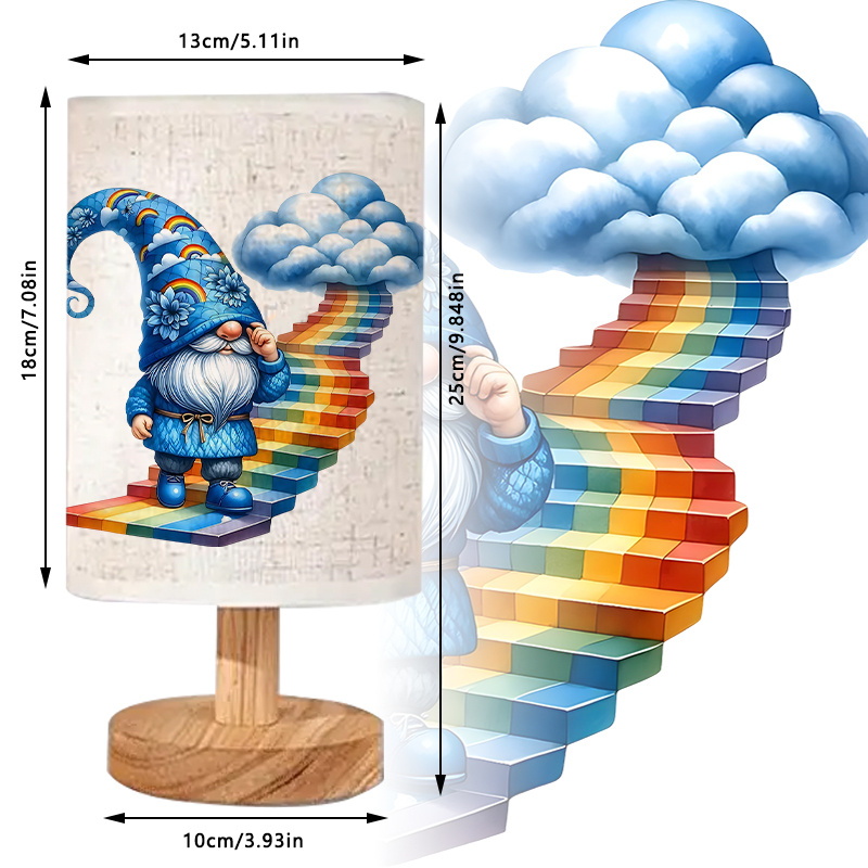 The scene of a gnome climbing a rainbow stairway encourages imagination and sets a dreamlike tone. For those curating unique interiors or looking to present a themed gift, this lamp provides a lasting addition without overwhelming the space.