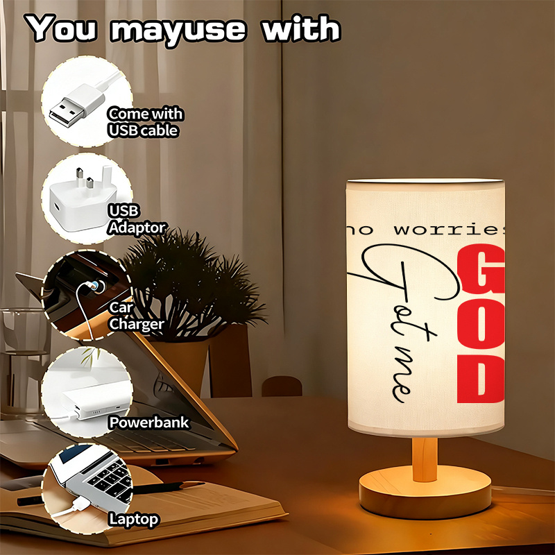 This table lamp stands out through its clear message, modern structure, and convenient USB power option. It offers a balance of decorative worth and everyday usability without complicated setup. The fabric shade diffuses light evenly, making it suitable for reading or ambient use while keeping the visual focus on the printed quote. Its compact footprint allows placement in multiple areas, making it a versatile addition to home décor collections.