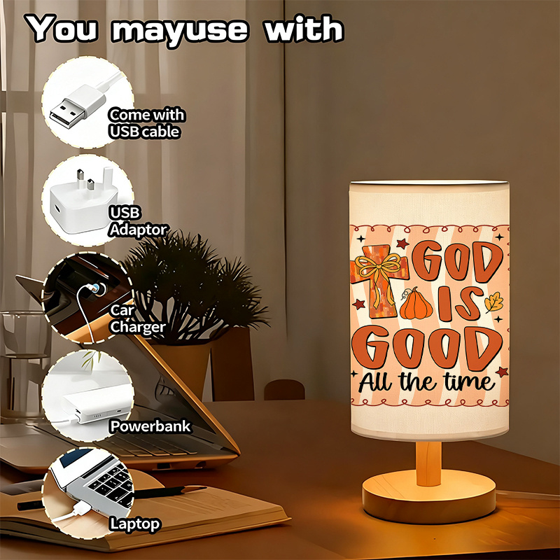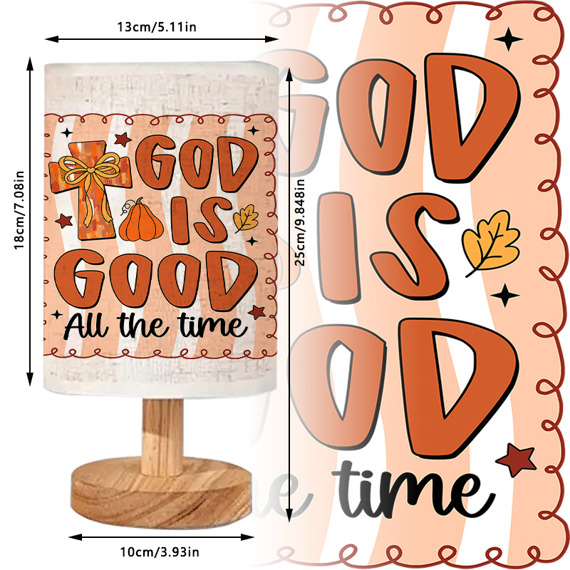 This God Is Good All The Time Printed Linen Table Lamp is suitable for bedrooms, living rooms, home offices, dorm rooms, and reading corners. It works well on nightstands, desk tables, entryway consoles, and side tables where compact lighting is needed. The printed message design helps it function as both a lighting piece and a decorative accent, making it suitable for housewarming gifting, seasonal gifting, and everyday décor updates. It can also be used as a simple ambient lamp for quiet evenings, background lighting during work sessions, or a soft light option for reading.