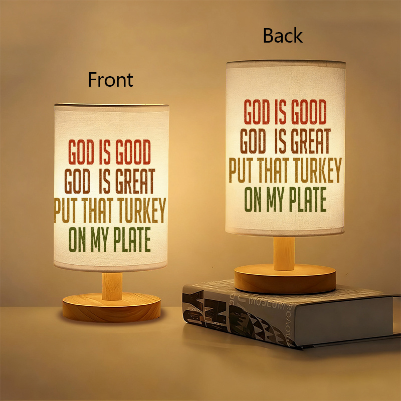 Bring modern style and warm lighting into your space with this God Is Good Printed Linen Table Lamp For Home Decor. The linen shade features a printed text design that adds personality to your decor. The lamp is cable powered and easy to set up in different rooms. It suits bedrooms, living rooms, reading corners, and desk setups.