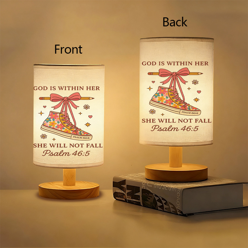 The God Is Within Her Printed Linen Table Lamp With Shoe Design offers both light and spiritual encouragement. Its simple design, featuring a beautiful message from Psalm 46:5, helps create a peaceful and motivating atmosphere in any room. USB-powered for convenience and energy efficiency, this lamp is perfect for bedrooms, home offices, living rooms, or study areas. Its colorful, uplifting design makes it an addition to your space, reminding you that God is always with you, helping you stand firm.