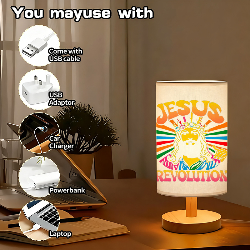 The God Revolution Faith Text Printed Linen Table Lamp is created for seasonal settings that favor warm lighting, thematic design, and structured materials. This lamp features a cylindrical printed shade and a balanced wood base, designed to remain upright and functional across various spaces.
