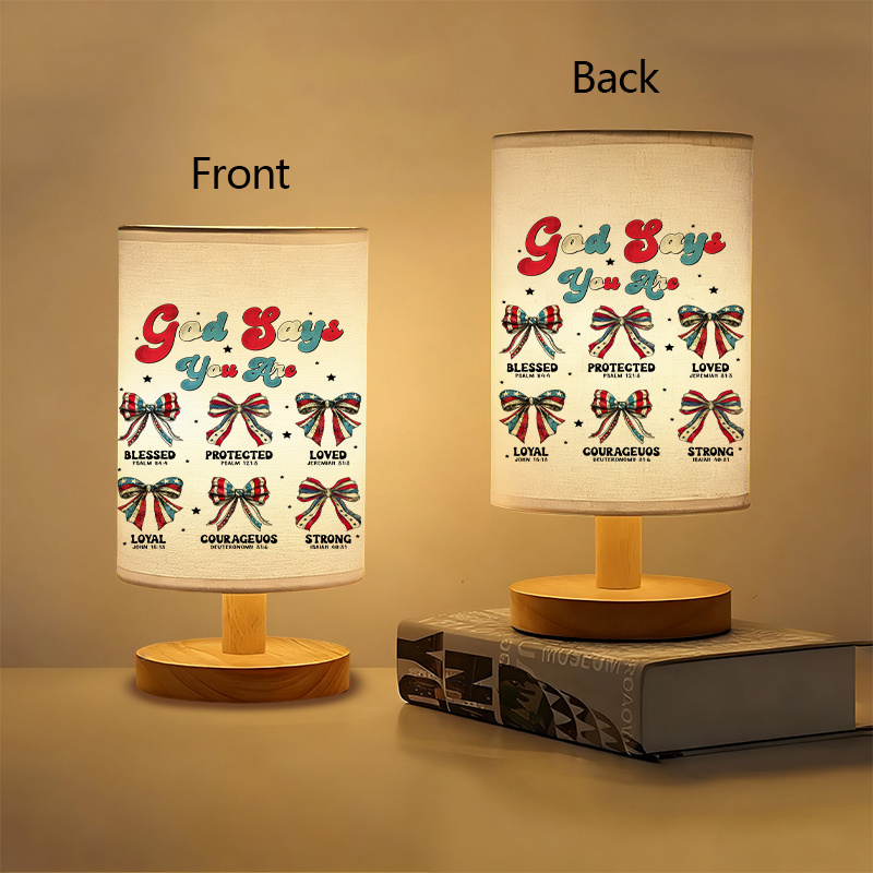 The God Says You Are Printed Linen Table Lamp is an indoor tabletop lighting fixture created for everyday use in a variety of room settings. It features a linen-style fabric shade with a faith-themed printed message and a modern structure that fits easily on desks, side tables, shelves, and nightstands. Designed for cable-powered plug-in use, this lamp provides steady operation without relying on batteries. A push-button switch allows for simple on and off control, making it easy to use during daily routines.