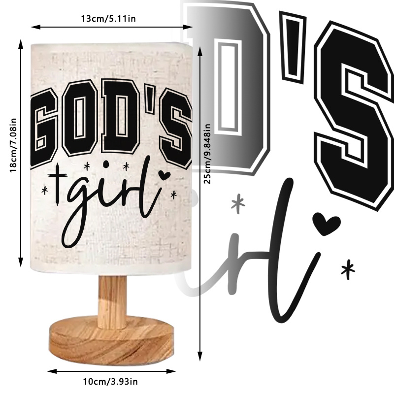 This Gods Girl Printed Linen Table Lamp Decor combines a modern silhouette with a printed shade that makes a clear statement on a desk, side table, or shelf. The cylindrical fabric shade features bold lettering with small graphic accents, creating a focal point that stands out in home and workspace settings. The lamp’s compact footprint helps it fit comfortably in smaller areas such as nightstands, reading nooks, apartment living rooms, and study corners. Its upward lighting direction provides a gentle glow that works well for general lighting and calm, low-level illumination during evening hours.