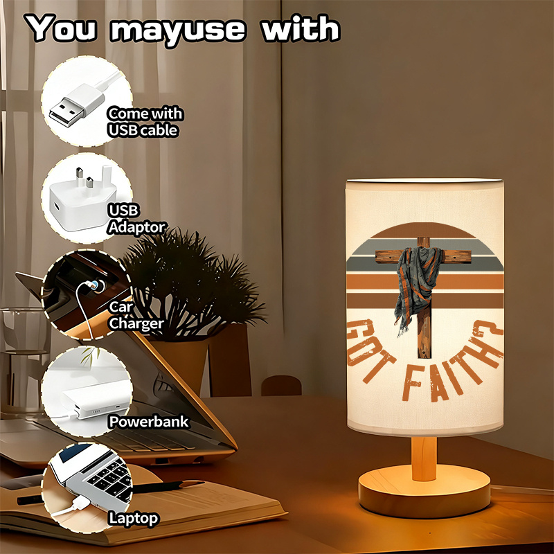 - Printed Linen Table Lamp with “Got Faith” theme shade design