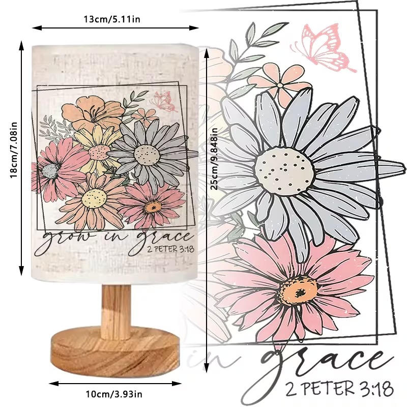 Bring purpose and intention to your quiet space with the Grow in Grace Floral Inspirational Artwork Printed Table Lamp with Faith Design. This decorative piece combines printed scripture with a soft floral visual style, offering gentle light for areas of devotion, reflection, or reading.