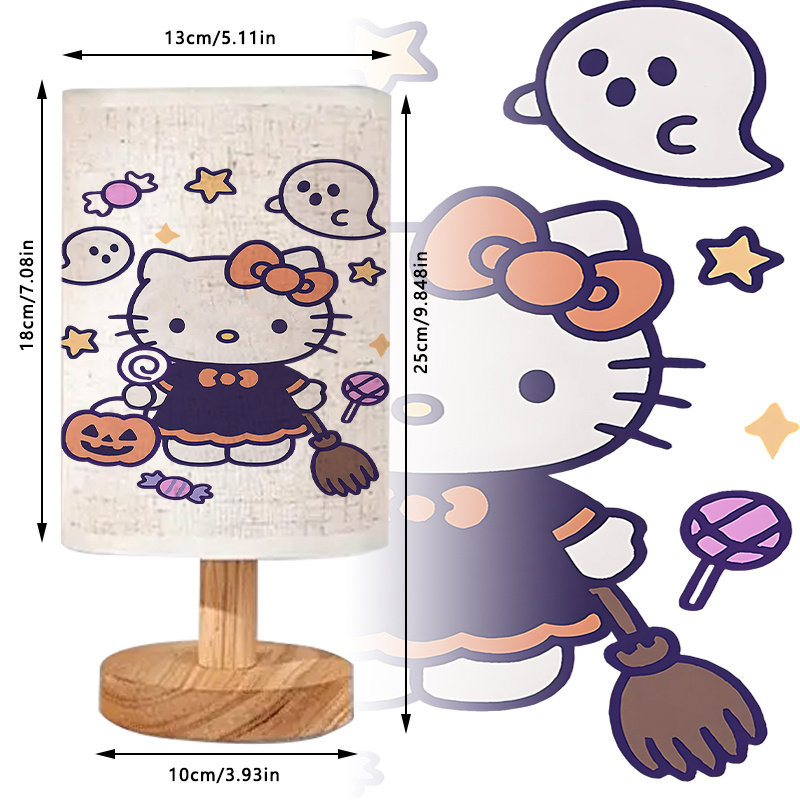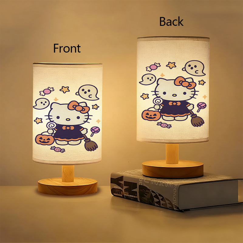 This Halloween Kitty Character Printed Table Lamp With Pumpkin Basket And Evening Vibes is made for seasonal display and ambient room glow. The printed lamp shade shows a character in costume with pumpkin basket and surrounding visual elements like stars and symbols. With a cartoon-style print and structured base, the product works as a festival-themed accent for indoor use.