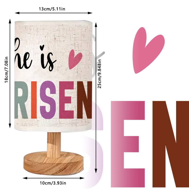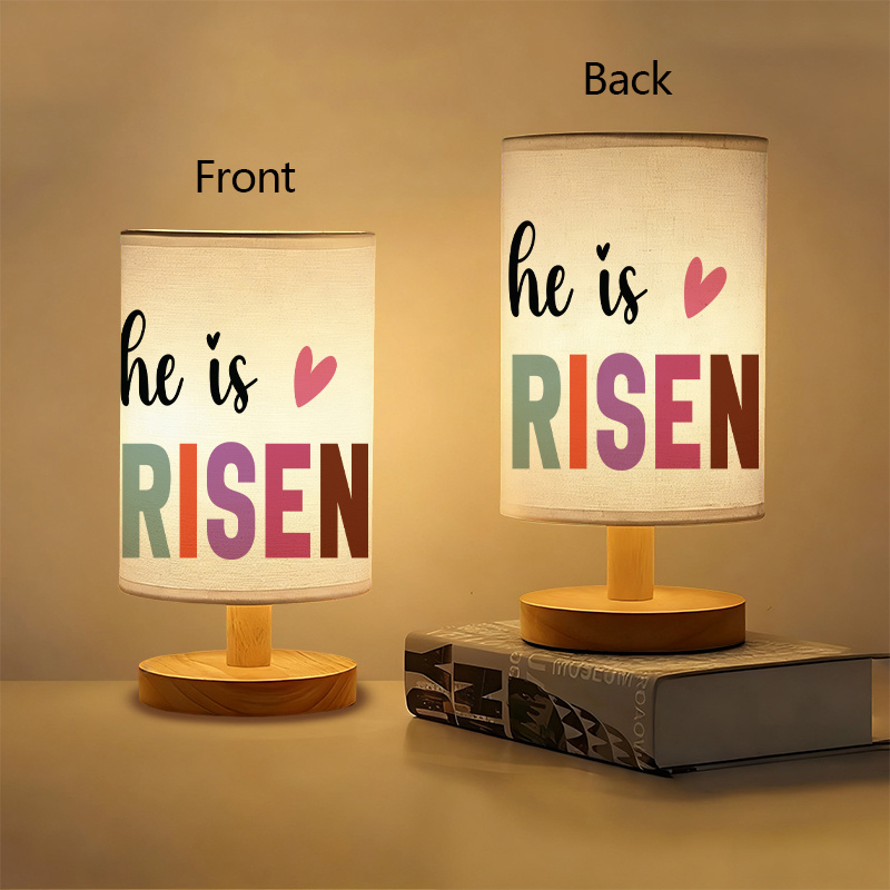 Add soft lighting and meaningful décor to your space with this He Is Risen Printed Linen Uplight Table Lamp. It features a modern linen shade with a bold risen message design. The text layout includes a core accent and large lettering. This creates a clear decorative focal point on any tabletop. The modern style blends well with many room themes.