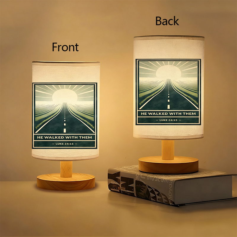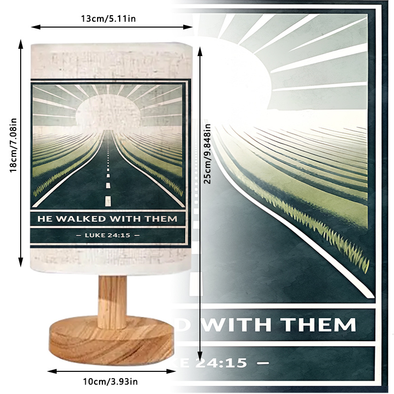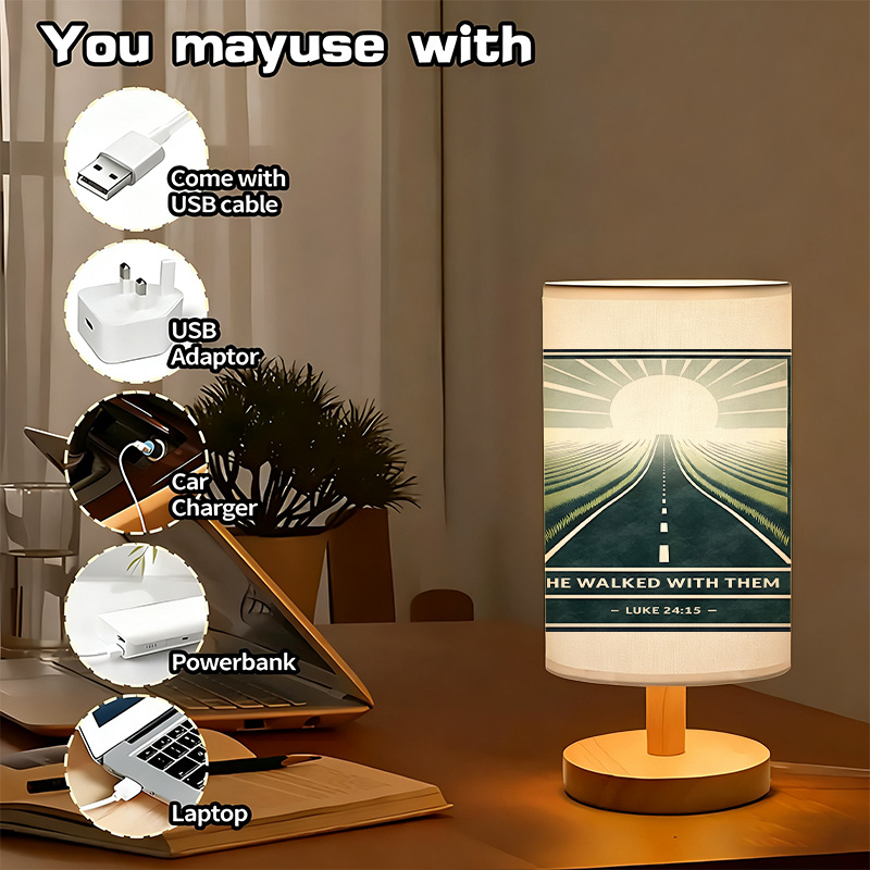 Add thoughtful design and gentle lighting to your interior with this He Walked With Them Text Print Linen Table Lamp With Scenic Pathway Artwork. Designed for modern living spaces, this lamp combines inspirational text with a landscape-style artwork printed on a linen fabric shade. Its USB-powered format allows convenient placement across various indoor environments, making it suitable for both decorative display and everyday lighting needs.