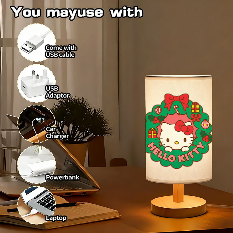 Light plays a central role during seasonal months. The Hello Kitty Christmas Wreath Printed Table Lamp introduces themed styling into personal or shared spaces. Designed with a printed holiday pattern and structured materials, this piece blends into various indoor settings for occasion-specific use.