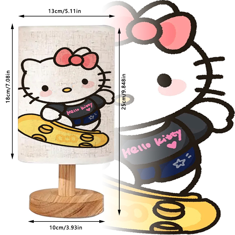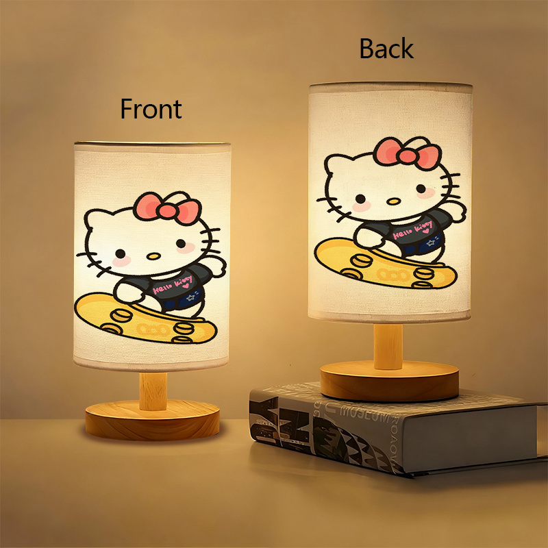 The Hello Kitty Skate Printed Linen Table Lamp brings soft indoor lighting and character-themed décor into one compact piece. Designed with a linen-style fabric shade and a wood-toned base, it suits modern interiors while fitting naturally into bedrooms, living rooms, and study spaces. When switched on, the uplight design sends light upward through the shade, creating an even glow that reduces harsh brightness and supports everyday activities such as reading, journaling, or quiet time at a desk. The patterned shade adds a clear Sanrio look without overwhelming the room, making it a practical accent for smaller spaces and simple layouts.