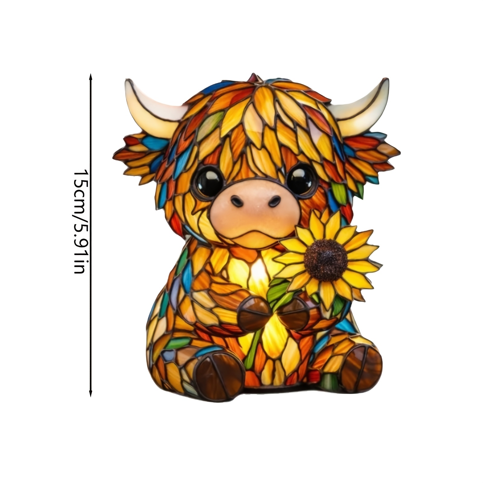 - Highland Cow Sunflower Lamp offers a decorative figure and tabletop light in one piece