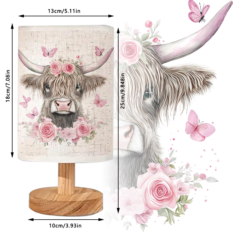 - Design: The lamp's design features a charming Highland cow adorned with soft pastel flowers, making it a perfect addition to a country-themed or rustic-inspired space.