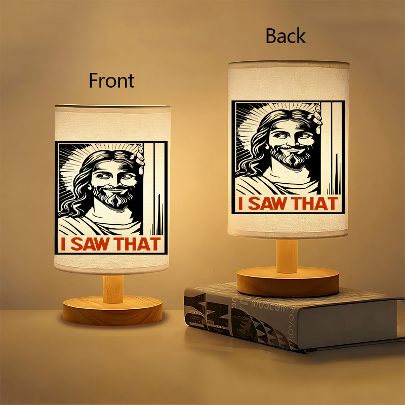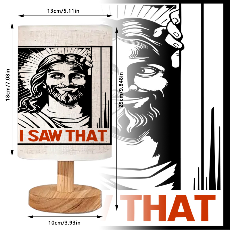 The I Saw That Printed Linen Table Lamp For Decor is a bold and meaningful lighting piece designed to bring faith, reflection, and warmth into your living space. Featuring a striking illustrated portrait with the message “I Saw That,” this lamp blends spiritual symbolism with modern humor and inspiration. Printed on a textured linen shade, the artwork softly illuminates when turned on, creating a calm yet thought-provoking atmosphere. Designed with USB power for everyday convenience, this Christ print linen lamp fits effortlessly into bedrooms, living rooms, offices, and prayer spaces. It serves as both a functional light source and a statement of faith, reminding viewers of awareness, guidance, and presence in everyday life.