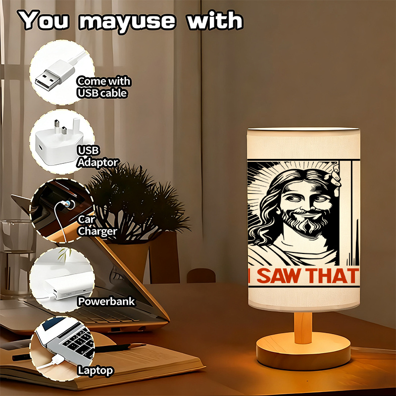 The I Saw That Printed Linen Table Lamp For Decor stands out for its blend of faith, message, and modern design. Unlike standard religious décor, it communicates awareness and reflection in a bold yet tasteful way. The linen shade softens the light beautifully, creating a comfortable glow suitable for evening use or quiet moments. USB power allows versatile placement using wall adapters, laptops, power banks, or car chargers. Its compact size makes it perfect for small spaces while still delivering strong visual and emotional impact. Whether chosen for personal inspiration or as a meaningful gift, this Christ print linen lamp combines message, comfort, and practicality in one elegant piece.