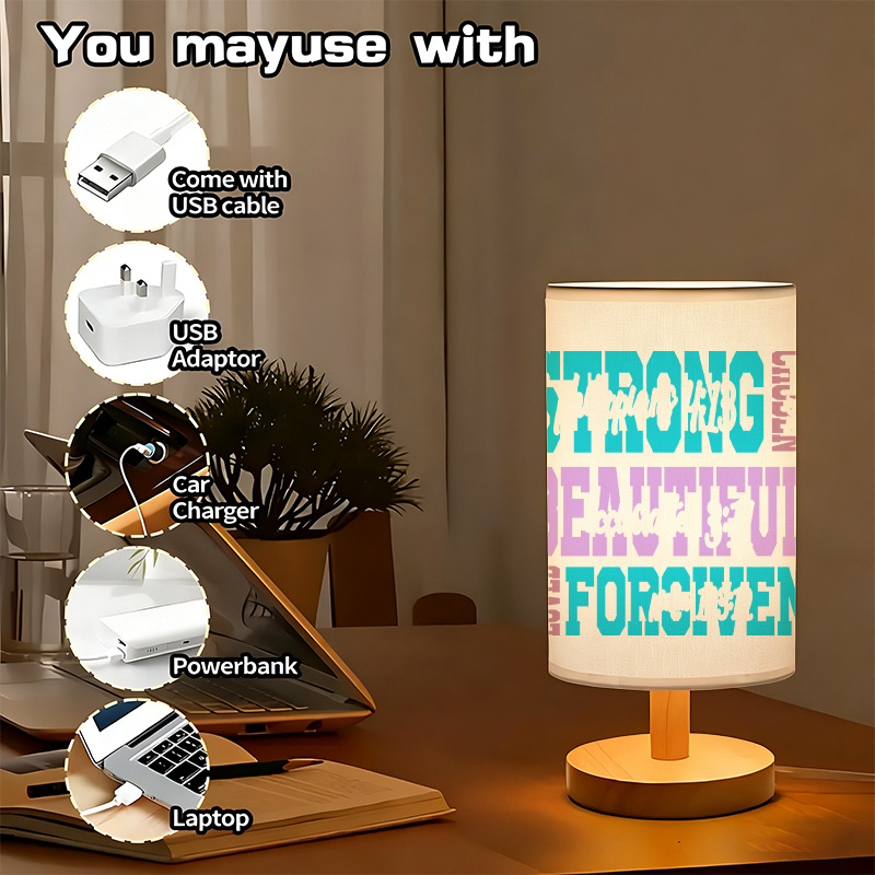 The Inspirational Table Lamp With Strong Beautiful Forgiven Printed Message For Home Decor helps bring peaceful structure and positive reflection into your space. With its simple message, soft light, and device-compatible power source, it functions both as a source of light and as a reminder to carry calmness and identity into every moment.