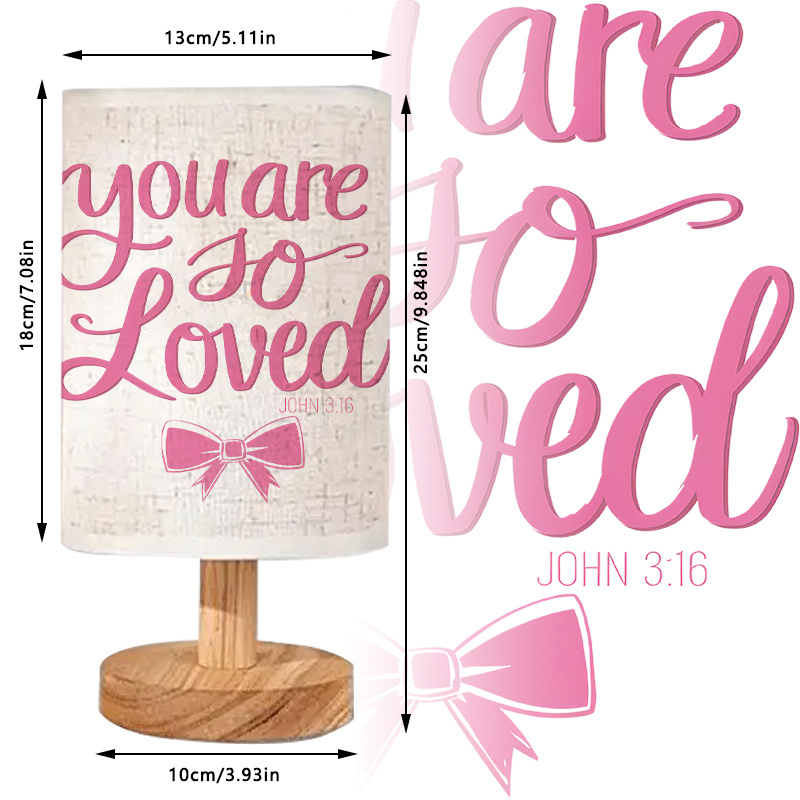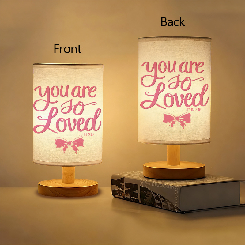 Add a meaningful decorative accent to your living space with the Inspirational Verse USB Powered Linen Table Lamp, a thoughtfully designed lighting piece that combines gentle illumination with uplifting wording. This table lamp features a carefully styled verse printed in flowing script on a textured linen shade, paired with a soft bow graphic for added charm. Supported by a smooth wooden base and powered through a USB connection, it offers everyday lighting convenience with a decorative purpose.