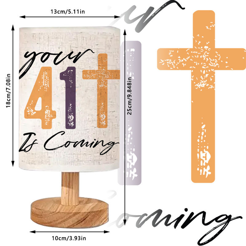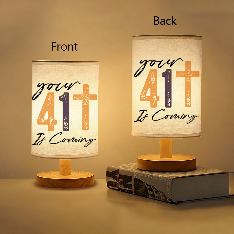 Designed for quiet spaces and steady light needs, the Inspirational Your 41 Is Coming Printed Quote Table Lamp With Wooden Base features a stable shape and straightforward structure. Its cylindrical form supports gentle indoor light, making it suitable for tabletops, desks, and shelves.