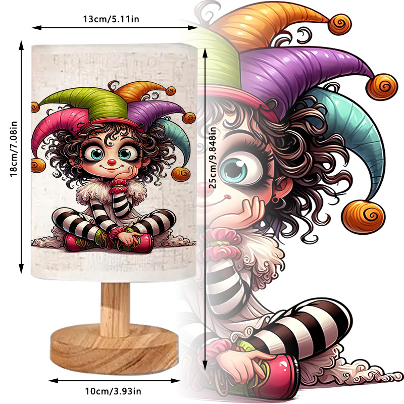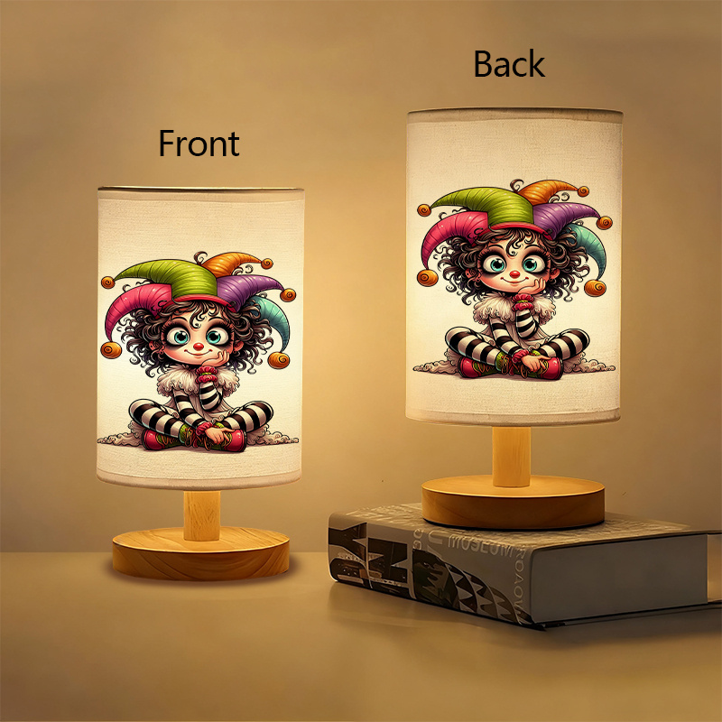 Joker Printed Bedside Linen Table Lamp is a modern table lamp made for small surfaces where you want a steady light source plus a bold printed accent. The lamp uses a linen-style fabric shade with a character-style illustration that becomes the main visual element in the room. When switched on, the shade helps spread light evenly, creating a softer output than direct overhead lighting. The lamp’s compact form works well on nightstands, desks, side tables, and shelves, so it can fit into everyday room layouts without taking over the surface.