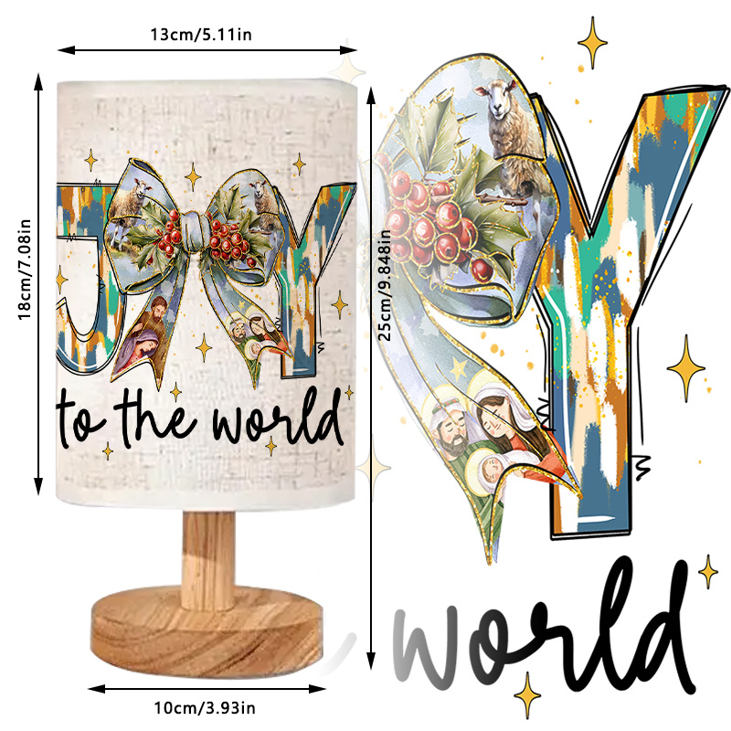 This lamp also suits entryway consoles and hallway tables, where it can provide a welcoming glow and a simple decorative focal point. It can be placed in a guest room to add a seasonal accent on a nightstand, or used in a reading nook near a chair for a calm lighting setup. The “Joy to the world” design makes it a fitting décor item for seasonal decorating, winter gatherings, and gift-giving occasions.
