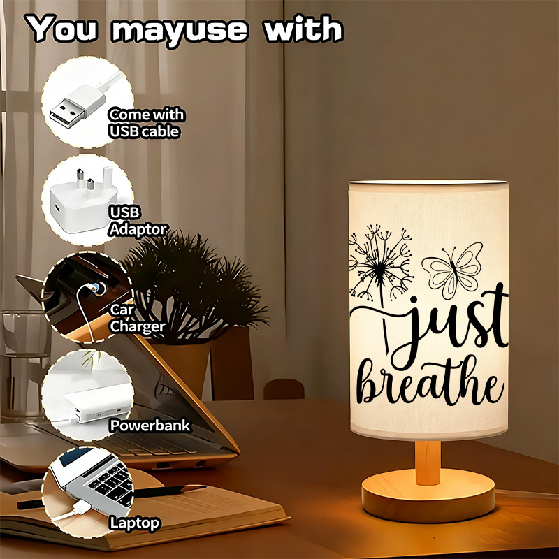 The Just Breathe Printed Linen Table Lamp For Decor is a versatile lighting solution designed for modern homes. Its soft glow, creative design, and convenient USB power make it ideal for creating cozy environments in bedrooms and living rooms. Whether used as a bedside lamp or decorative accent, it adds warmth and character to any space with minimal effort.