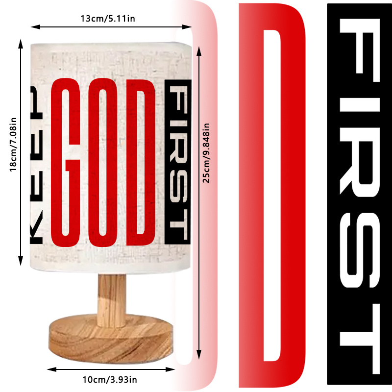 - Faith-Based Message: The Keep God First Printed Linen Table Lamp For Home Decor carries an inspirational message. It boldly displays the words “Keep God First” in bright red and black, offering a constant reminder to place God at the center of everything. This message is both uplifting and encouraging for anyone who needs spiritual motivation.