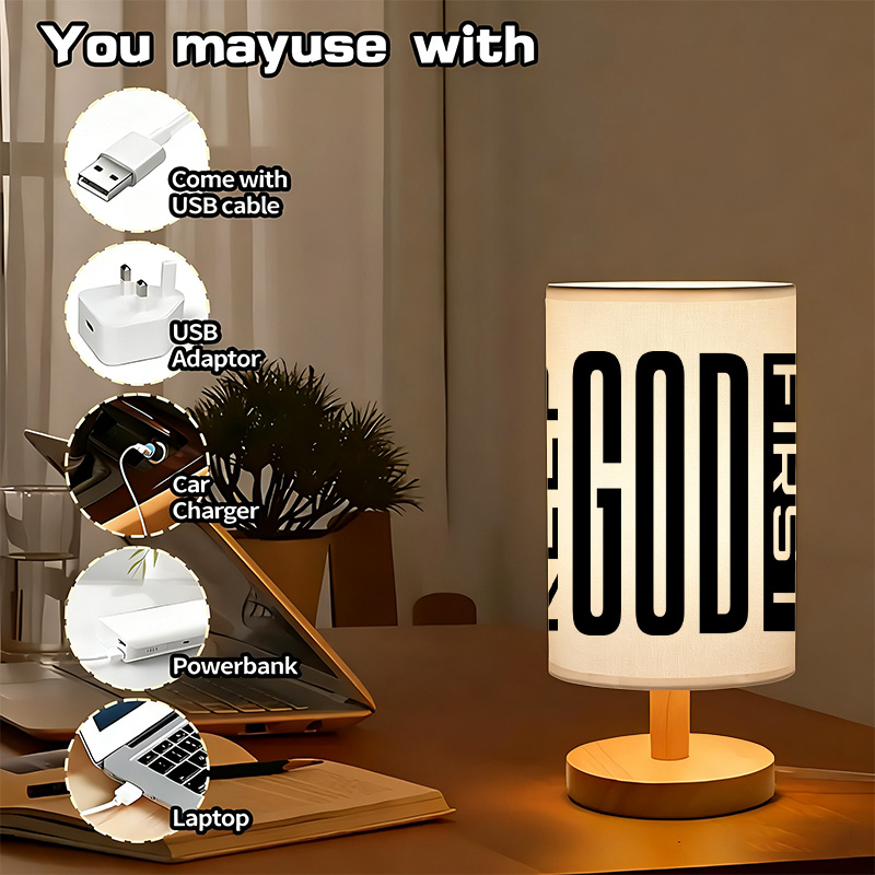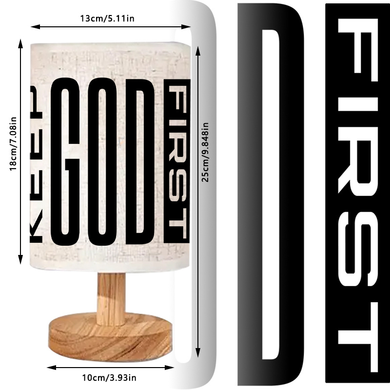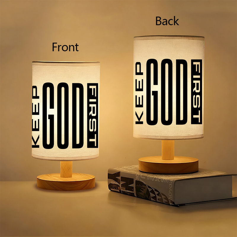 This Keep God First Printed Table Lamp With Large Block Letter Artwork delivers visual balance through bold printed text on a structured shade. The upright design, coupled with a minimal vertical typeface, gives the lamp a distinct identity suitable for quiet spaces, desks, or reading areas.