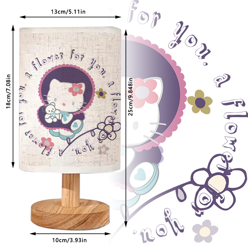 This compact Kitty Character With Flower Printed Table Lamp For Decor features a character-themed design suitable for decor-focused spaces. The piece blends printed graphics with simple structure, providing a utility option for lighting in indoor environments. Its illustrated surface displays a floral motif, paired with a short message, to support visually themed surroundings.