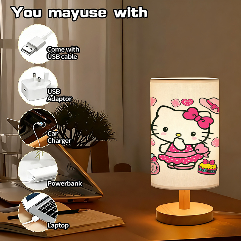 The Kitty Dessert Table Lamp offers a themed print combined with functional lighting. It’s an option for those who want minor light in personalized spaces. The wood base, fabric shade, and USB power system keep it easy to position and operate.