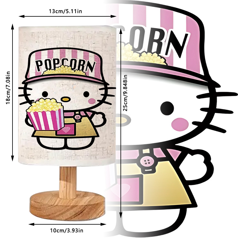 Kitty Holding Popcorn Themed Linen Table Lamp is a compact table lamp designed for indoor tabletop lighting with a printed character-style graphic on a linen-style shade. The shade provides a soft diffusion effect that helps create gentle room lighting for daily routines such as reading, winding down in the evening, or adding background light while working. The printed design is centered and easy to notice even when the lamp is not switched on, so it can also function as a décor piece on a shelf, side table, or desk. The lamp form is simple and space-conscious, making it suitable for smaller rooms, apartments, dorm spaces, and guest rooms where tabletop space matters.