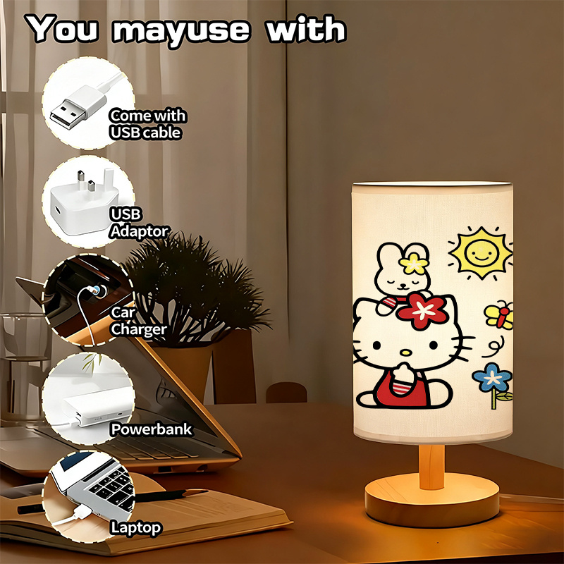 - Hello Kitty Design: The lamp showcases the Hello Kitty character surrounded by cheerful elements like a sun, flowers, and a bunny. It’s sure to bring smiles to anyone who sees it.