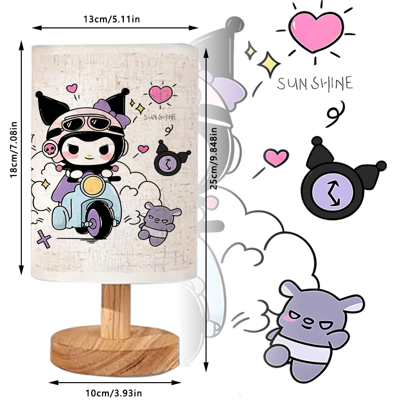 The Kuromi On Scooter Ride Themed Linen Table Lamp is created for seasonal settings that favor warm lighting, thematic design, and structured materials. This lamp features a cylindrical printed shade and a balanced wood base, designed to remain upright and functional across various spaces.