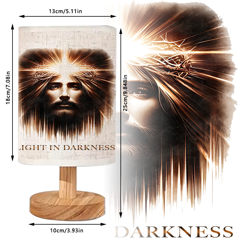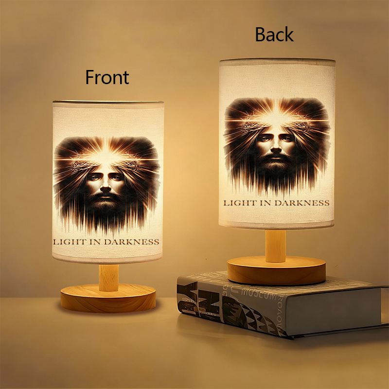 - Printed Linen Table Lamp with “Light in Darkness” message design