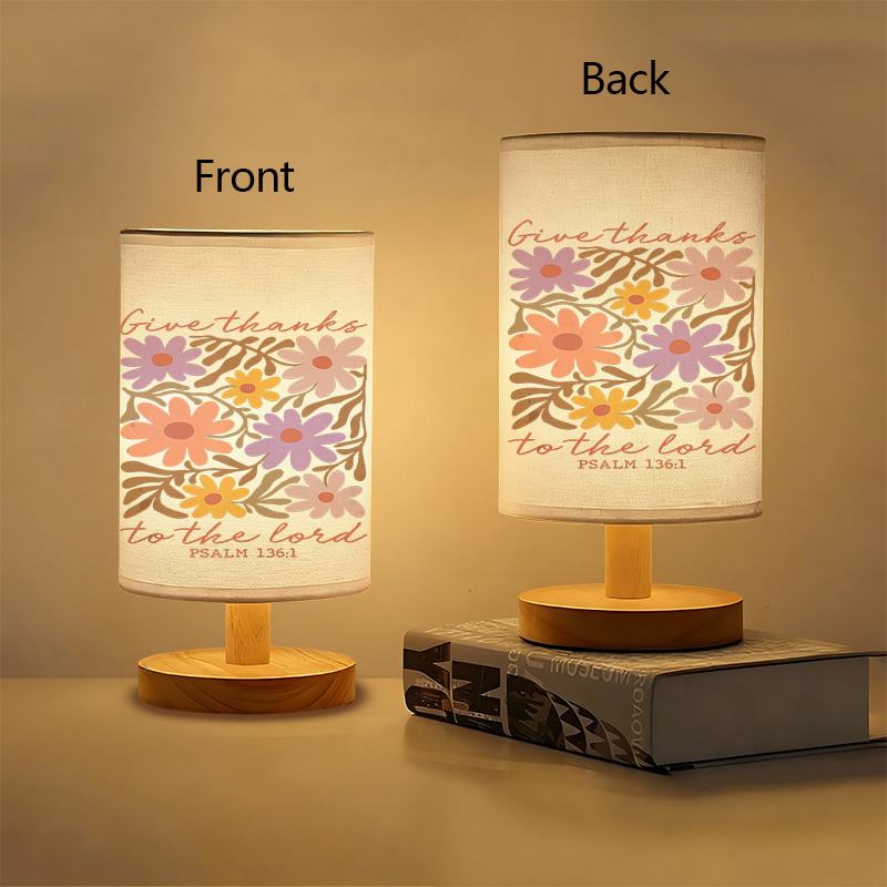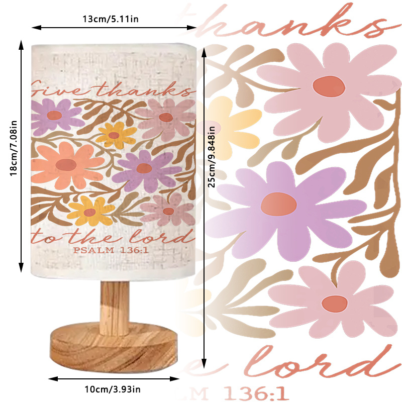 This Linen Table Lamp With Inspirational Quote And Flower Print is not only a functional piece of lighting but also a beautiful decoration that complements your home decor. The vibrant floral design combined with the uplifting message "Give thanks to the Lord" brings a sense of peace and gratitude into any room. The soft glow emitted by the lamp creates a warm and cozy atmosphere, making it ideal for bedrooms, living rooms, or even as a bedside companion.