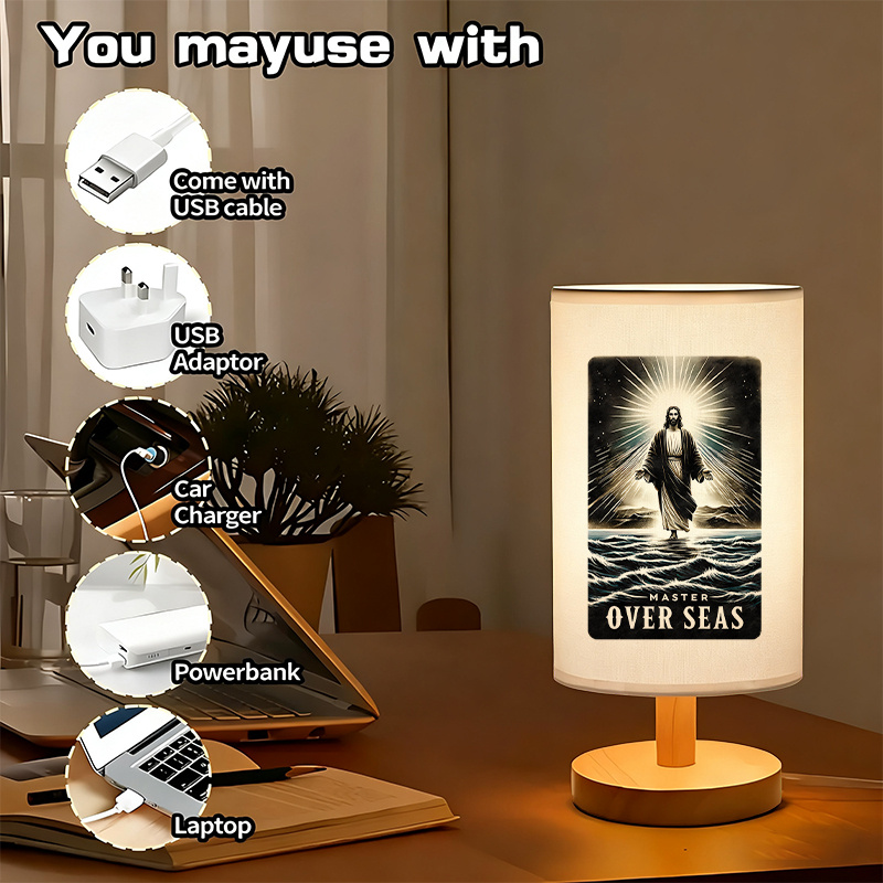 The Master Over Seas Printed Linen Table Lamp stands out for its strong spiritual imagery combined with modern convenience. Unlike ordinary decorative lamps, it conveys a message of faith, calm, and authority through meaningful artwork. The linen shade softens the light, creating a peaceful glow ideal for evening reflection or quiet moments. USB power ensures flexible use with wall adapters, laptops, power banks, or car chargers. Its compact design makes it suitable for small spaces while still delivering emotional and visual impact. Whether chosen for personal devotion or as a meaningful Christian gift, this lamp offers both inspiration and everyday usability.