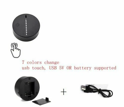 This 3d illusion led lamp uses a flat acrylic panel to create depth. The etched pattern reflects light to form a three-dimensional appearance. The illusion effect is visible from multiple viewing angles.