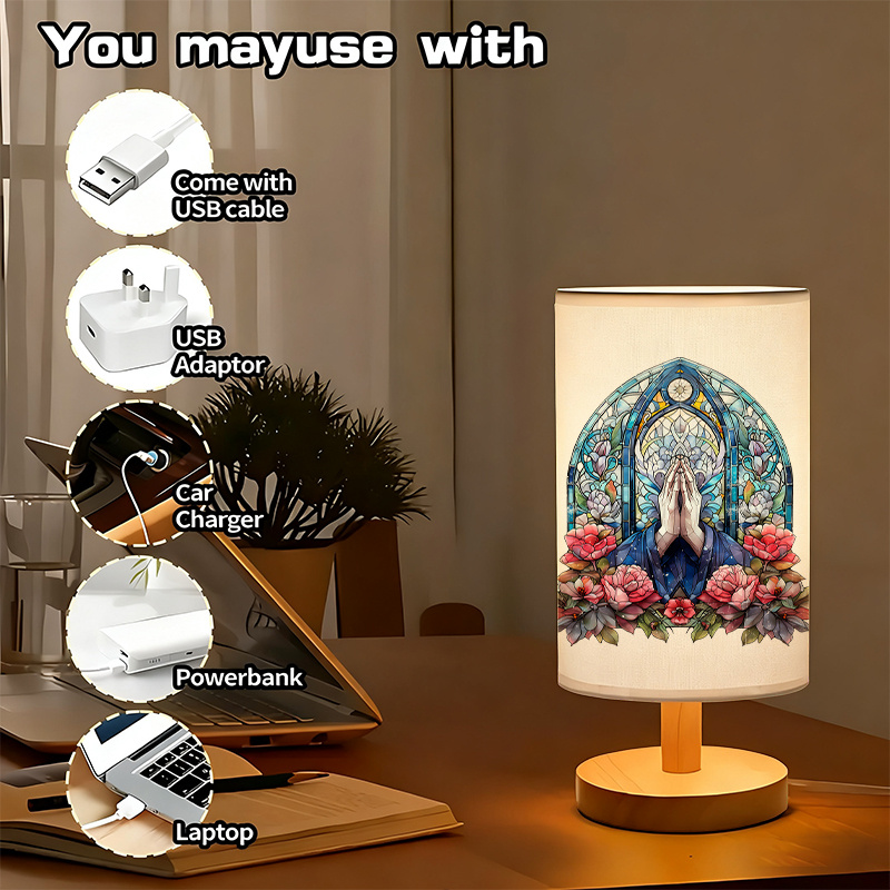 The floral artwork adds texture and character without dominating surrounding décor. Its wooden base provides balance and stability on flat surfaces, while the lightweight construction allows easy repositioning. USB connectivity supports use with a wide range of power sources, making it adaptable to different room layouts. Suitable for everyday indoor use, the lamp integrates smoothly into modern, minimalist, or transitional interiors and serves as a functional lighting element with visual appeal.