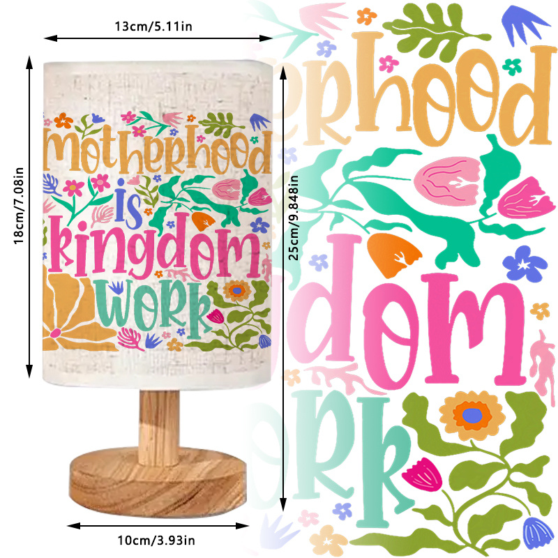 Add a grounded and functional lighting element to any space with the Motherhood Is Kingdom Work Printed Decorative Table Lamp. Designed with a quote that reinforces purpose through daily life, this piece provides visual meaning along with gentle, warm light. Its print reads Motherhood Is Kingdom Work and is paired with floral elements that wrap around the lamp’s surface for added artistic tone.