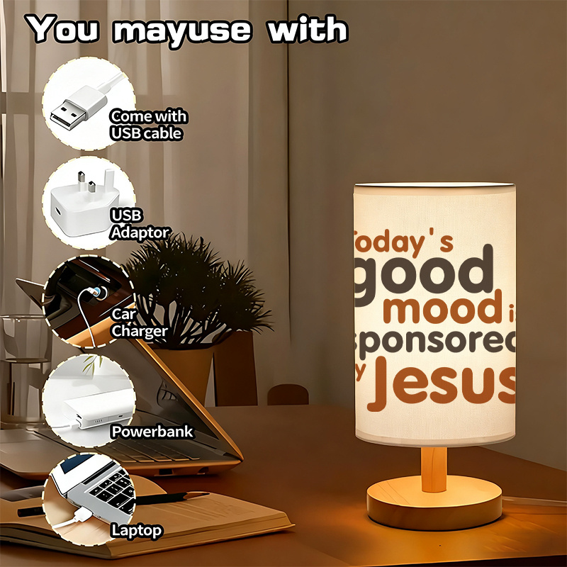 Motivational Quote Design Printed LED Linen Table Lamp brings an inspiring message of positivity and faith with the phrase “Today’s good mood is sponsored by Jesus.” With its modern design, it fits perfectly into any home or office décor. USB powered and energy-efficient, it serves as both a stylish lamp and a motivational reminder. Ideal for gift-giving or personal use, it adds hope and encouragement to any space.