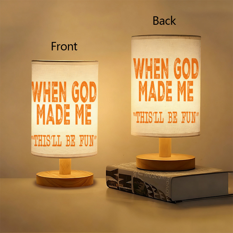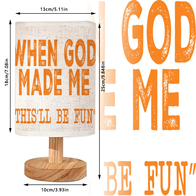 The God Made Me Printed Design Linen Table Lamp is more than just a light source; it’s a reminder to stay positive. The motivational quote "When God Made Me, This’ll Be Fun" inspires confidence and joy in anyone who reads it. With its USB-powered feature, this lamp is both eco-friendly and versatile, working with any USB-compatible device. It is an excellent addition to your home or office for those who likes functional décor with a meaningful look.