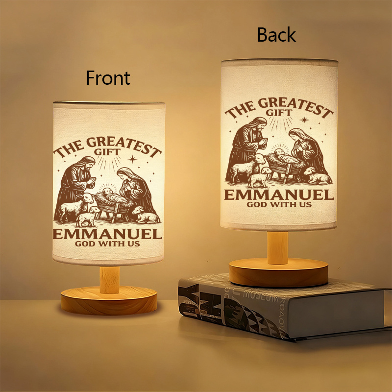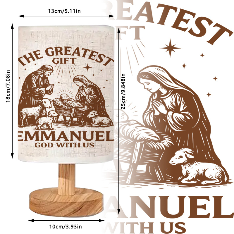 The Nativity Scene Themed Linen Table Lamp For Home Decor is a perfect blend of function and meaning. Featuring a nativity scene and the inscription "The Greatest Gift, Emmanuel - God with Us," this USB-powered lamp emits a soft, warm glow ideal for creating a cozy, spiritual atmosphere. Perfect for Christmas decor or year-round reflection, this lamp brings light and peace to any space.