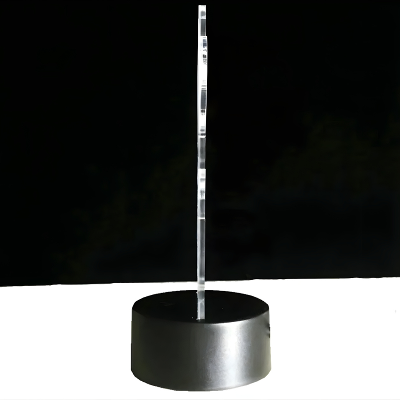 The acrylic panel is precision-engraved to deliver crisp, clean lines that glow evenly when lit. The clear acrylic surface works with the LED base to produce a layered depth effect, giving the illusion of a floating graphic. The black base adds contrast while maintaining a minimal and modern appearance. Each lighting mode highlights the engraved design differently, creating a dynamic visual experience without overwhelming the surrounding space.