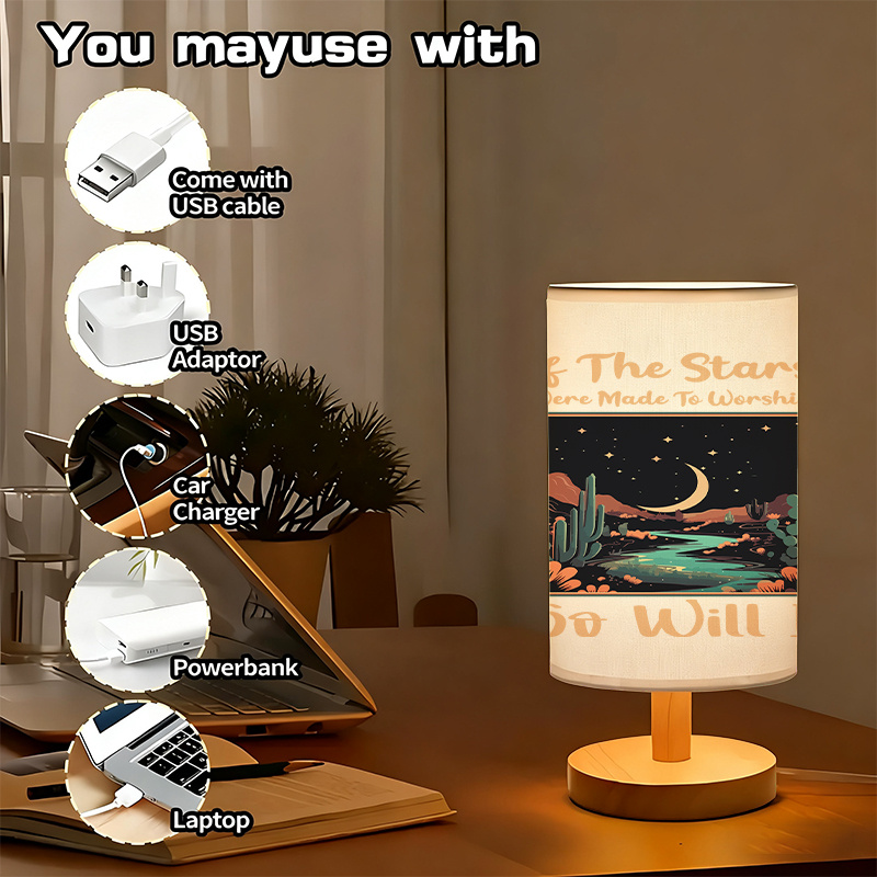 This modern USB table lamp suits many room styles. Place it in the bedroom for bedside decor lighting. Use it in the living room for a warm ambiance effect. It also works well in study areas and reading corners. The printed shade adds character to modern home setups.
