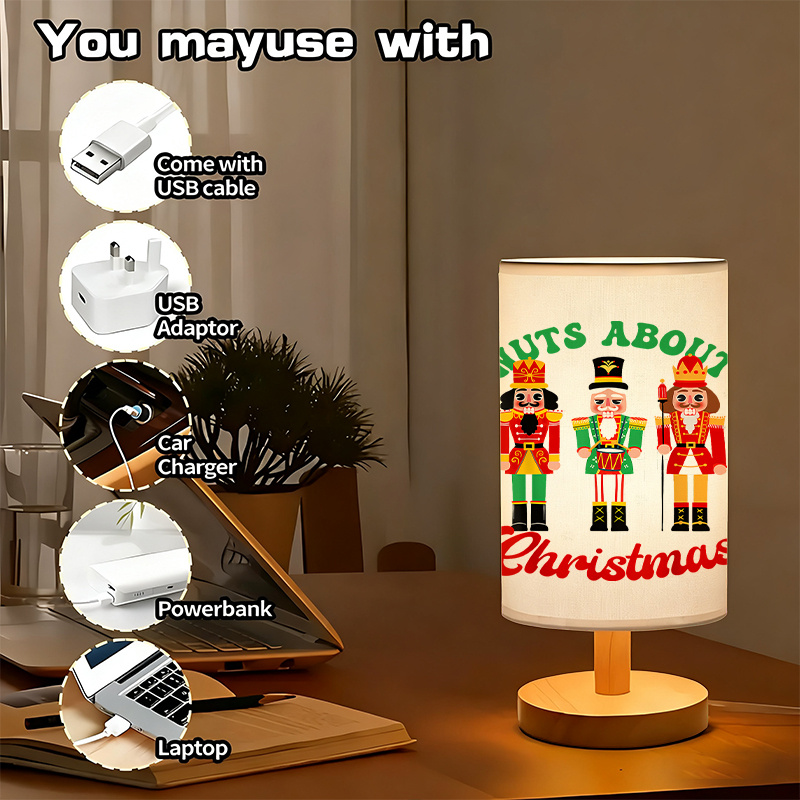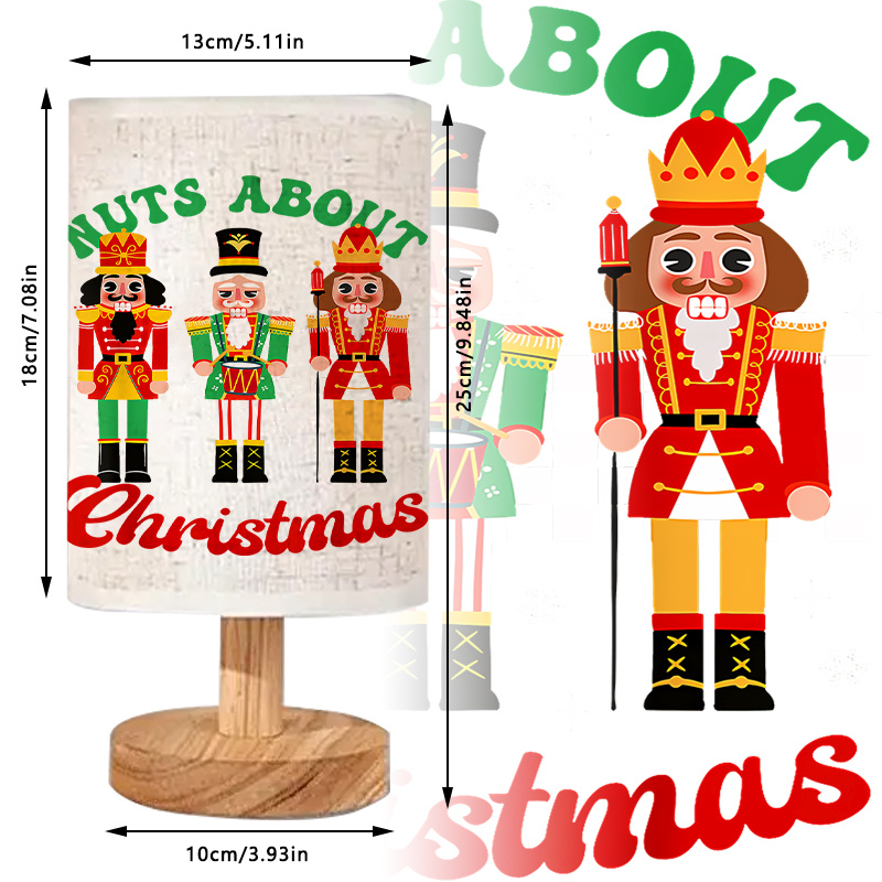The Nuts About Christmas Message Printed Table Lamp with Nutcracker Character Artwork delivers a functional seasonal option for indoor decorative lighting. Its visual concept combines printed message artwork with a classic character illustration often associated with wintertime themes. Designed for tabletops, the lamp contributes a subtle visual accent while serving as a source of ambient lighting.