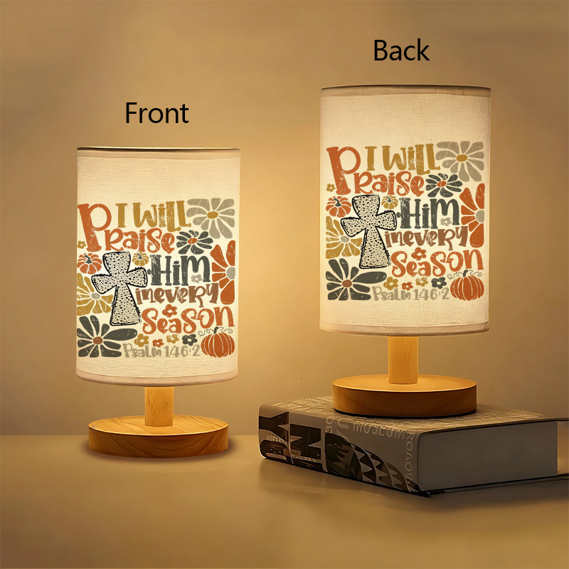 The Praise Him Every Season Printed Linen Table Lamp is a USB-powered linen table lamp with an inspiring message: “I will praise Him in every season” from Psalm 146:2. It features soft, ambient lighting and a beautiful cross design, perfect for adding both light and motivation to any room. Ideal for bedrooms, offices, or living rooms, this lamp serves as both a source of light and spiritual encouragement.